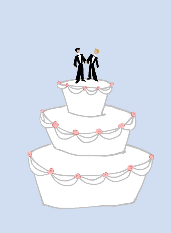 Yes, it’s not typical for a groom to stop by a bakery to pick up his wedding cake between ceremony and reception. But these are not ordinary times. Since the court’s ruling went into effect on June 25, hundreds of same-sex couples have descended on county courthouses around the state to pick up their marriage licenses so they can become “spouses for life.” The Los Angeles Times reported that the numbers of marriage licenses issued throughout the state in June, the traditional month of weddings, doubled. In Contra Costa County, the county where I live, about 80 gay couples received licenses. The first to wed in one these ceremonies in my county was Stephen Weir, the county clerk-recorder. His wedding made national news because, as county clerk, an elected position, it had long been his job to issue marriage licenses, but he could never issue one to himself and his dearly beloved—until June 25.