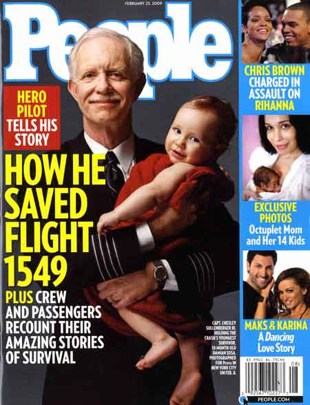 2. That People magazine cover says it all about how the oversaturation in coverage on Sullenberger. He did a great thing, and all this coverage, and his constant appearances sort of wear out his welcome. He should have been getting better advice from his PR people.