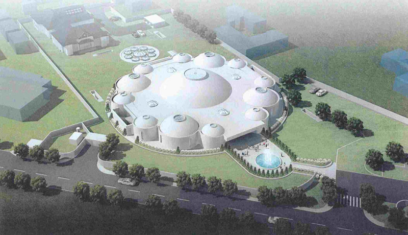 Sufism Reoriented’s proposed sanctuary, of course, won’t be a private residence but a school of worship for its some 350 members. It is proposed to be built on 3.25 acres–a tad smaller space than the Spelling property. This sanctuary will be “nestled in a glade of trees” (once they grow in), and two-thirds of it will be undeground. Among the sanctuary’s rooms will be a prayer hall, administrative offices, a film library, publishing and book distribution offices, children’s classrooms, a choral rehearsal studio, and a spiritual bookstore.