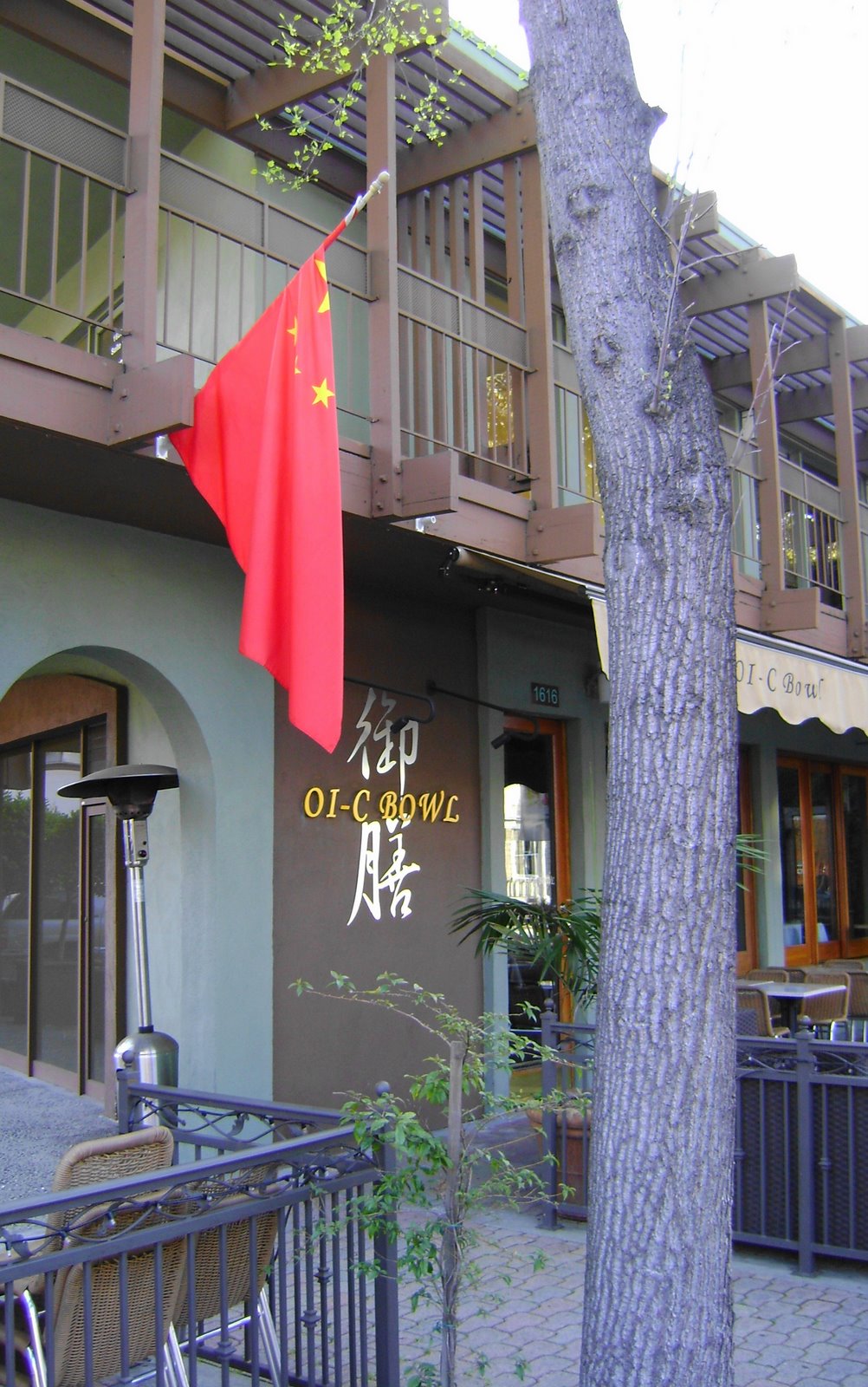 The infamous red flag hanging in front of OI-C Bowl Chinese Kitchen and Bar on Main Street, which I featured in a widely discussed post March 24, has been stolen.