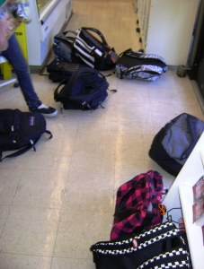 The happening place in Walnut Creek, for tweens in the afternoon, at least from what I briefly observed this afternoon, as a new middle school parent, is the 7-Eleven on North Civic Drive, a few blocks from the shortcut from the WCI athletics field, across the Ironhorse Trail and up to Civic Drive. (Pictured here are backpacks the kids leave when they enter the store en masse.)