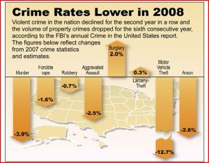 div>According to a special Crazy in Suburbia analysis of statewide data–completed by our “crack” team consisting of me and my calculator–crime dropped across the board in California. Violent crime dropped 3 percent, homicide, 5 percent, property crime, 3 percent, and car thefts 12 percent.