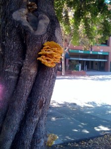 HAPPY SUNDAY! Hope you’re enjoying this hot, hot weather. Anyway, I’m looking for any tree growth experts, botanists, mycologists (would that be a proper term?) to share their theories about what this Thing is. A Crazy reader, Walnut Creek Street Walker, sent these photos in. Street walker was out doing, I suppose, what street walkers do, and happened upon this strange formation … Right in the Middle of our Downtown! … And Street Walker snapped some shots–photographic evidence!–of its existence.