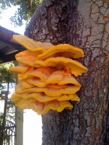 It will stay there until (and if) someone removes it. As it dries, it will become ratty-looking and then it will harden. Since YOU are the lemon lady, perhaps this is a good time to mention that Laetiporus is considered an edible delicacy by some….. like rattle snake meat and 99% of everything else we choose to sample from the wild??….. “tastes like chicken”. WARNING: only experts should collect and eat wild “mushrooms”.