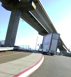 Going east on Treat, the truck, even though it is not the most agile of vehicles, moves in and out of lanes. Maybe so the driver can see if he is being pursued by some Crazy woman in a busted up old Camry.
