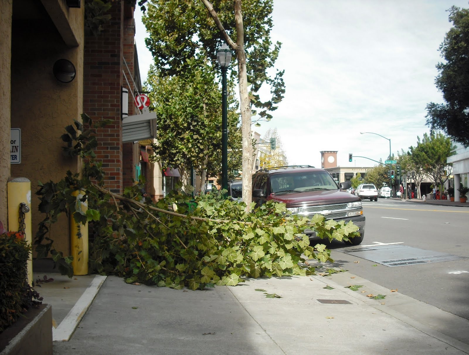 But, Walnut Creek suffered its own share of windstorm damage and transportation hell Tuesday evening, besides the downed tree branch shown in these photos. Power outages, believed to have been caused by high winds, affected traffic signals along Ygnacio Valley Boulevard.