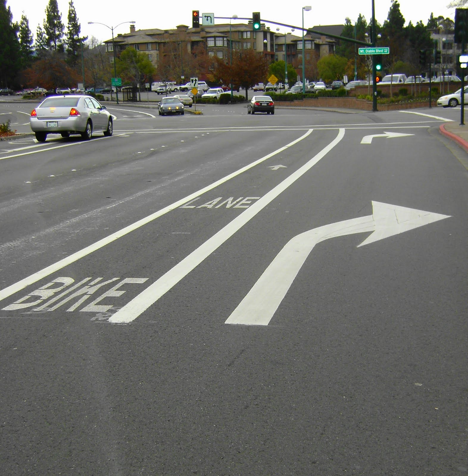 The bike lane along California Boulevard ends at Mt. Diablo Boulevard. If the bicyclist is determined to push to Newell Avenue on south to the end of California Boulevard, well good luck to the bicyclist. He or she has to compete with motorists for space, especially in those two blocks between Olympic Boulevard and Newell Avenue.