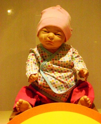 So, I was out and about last night, strolling up and down our lovely downtown streets, and came across a store that sells baby gear, and I saw this and other mannequins modeling the coolest of the cool baby fashions and baby accessories. The clothes and high-tech baby bathtub and other gear was cool, but the mannequins … I don’t know, seeing them gave me this cold, tingling feel running up and down my spine.