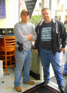 We made an exception on February 6, 2010, and regret this decision now. We were misled with some facts. The local police were involved and we knew none of the weapons were loaded, but it still caused tension with the large mob of people arriving as a group instead of individually. It was supposed to be a group luncheon, and it turned into a meeting. It was an organized propaganda meeting with an agenda. Flyers were handed out and none of this was Okayed with management. There were supposed to be only 50 people, and at least 100 were there. We were told that the luncheon would be an hour, and it turned into two hours We only have about 70 seats, so some of our customers had no place to sit.We apologize for any inconvenience to our regular customers, it will not happen again. We want to have a safe place for you to dine, and a safe place for us to work. Thanks for your support and understanding.