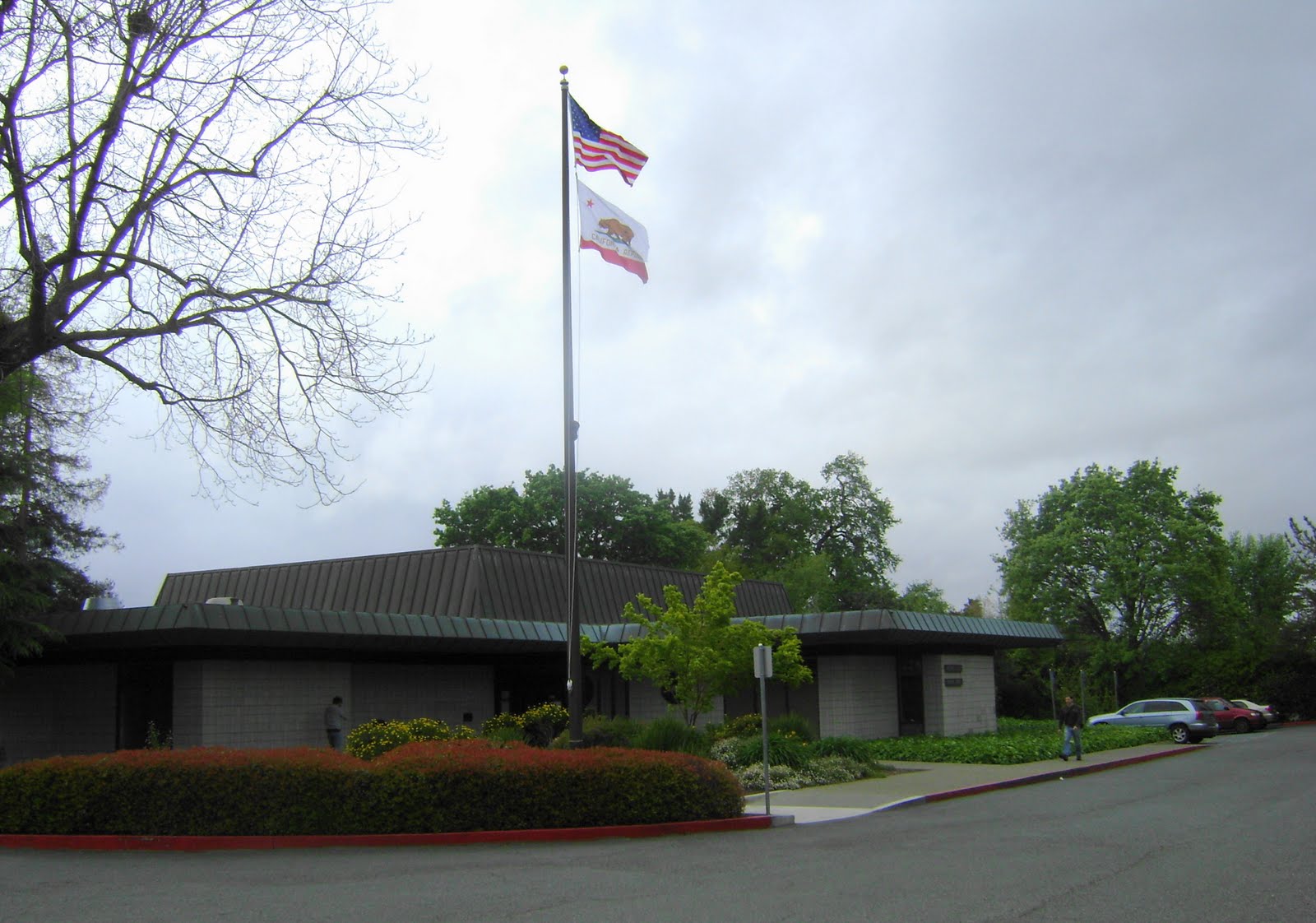 A reader told me that the flag pole has not been flying flags for quite some time. Brittain says that she could not find any record at the Ygnacio Valley Library on when the flag pole ceased to work. The previous library manager, who had been working there since the 1990s, didn’t have any idea either.