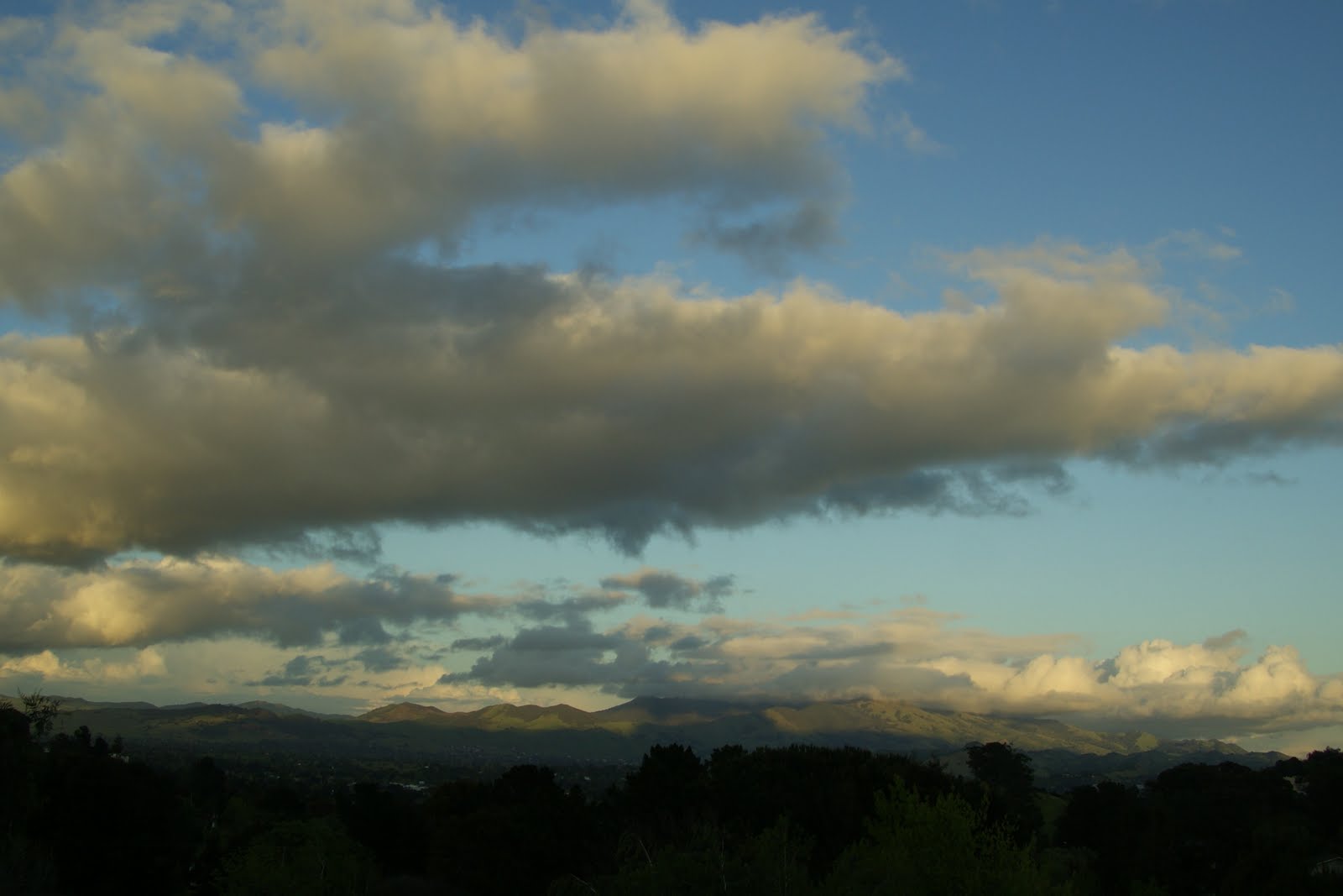 Following record-breaking rain that fell on the Bay Area Sunday and Monday, the sun is started to peek out from behind storm clouds. A reader captured this image of Mount Diablo late yesterday with blue sky streaking above, and sun dappling the hillsides.
