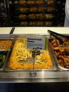 –Macaroni and cheese from Whole Foods: Comfort food at the Soccer Mom home. You’ll know why if you read these ingredients: pasta slathered, tossed and baked with a buttery white sauce, heavy cream,  Jack cheddar cheese and parmesan. Whole Foods was running out when I snapped this photo.