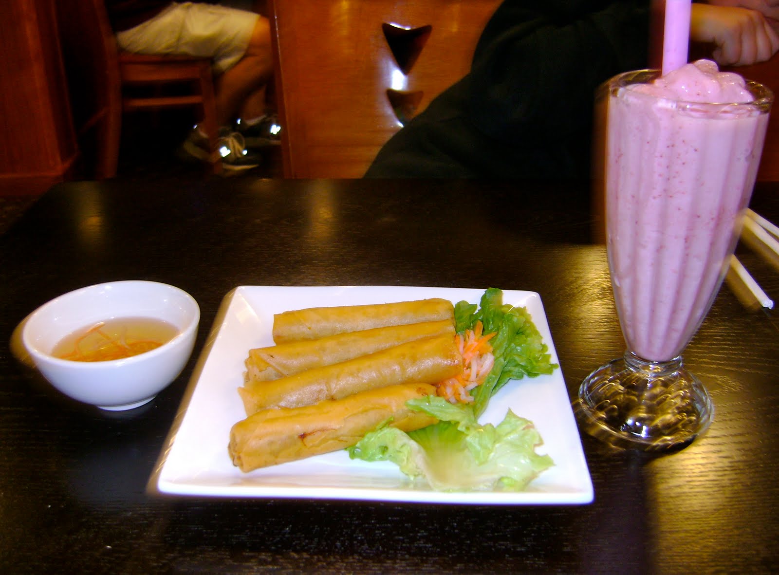 –Strawberry smoothie and imperial rolls from Pho Saigon Noodle House