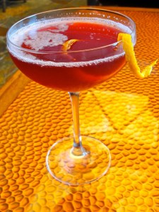 –UPDATE: L’Orange Pomegranate martini, Sasa. Tastes like a nice icy glass of pomegranate juice, with a splash of lime and ginger. You could just drink it down–like juice–but there is the matter of the L’Orange Grey Goose vodka that would make you lose your designated driver status.