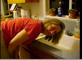 And that idea had me leaning over the sink, and him pouring something very bracing over my head: He water. He did it, and we haven’t laughed so hard, since, well, Sunday night’s Family Guy parody of The Empire Strikes Back. Watch me getting iced here. Click on the image twice, then hit play.