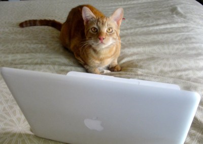 Indeed, Pippin does like nuzzling up against the keyboard as the laptop is on my lap. He gets the best of both heat-generating worlds. It makes it hard to write, though.