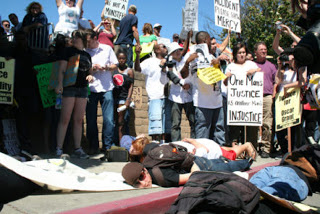 But c’mon: Walnut Creek is protest central in the East Bay suburbs. For this blog and Walnut Creek Patch I covered pro-gay rights/anti-Proposition 8 rallies; a loud, crowded face-off over the verdict of Oscar Grant shooter Johannes Mehserle–with police in riot gear shutting down Ygnacio Valley Boulevard to keep the peace; the Occupy movement rallies of 2011; and an anti-gun candlelight vigil following the shooting of Gabrielle Giffords.
