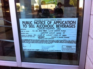 So along with buying popcorn and nachos with that neon orang-y cheese, patrons at the Century Walnut Creek 14 will soon also be able to buy a glass of wine or beer. This is according to a “Public Notice of Application to Sell Alcoholic Beverages,” posted in one of the windows of the movie theater facing Locust Street.